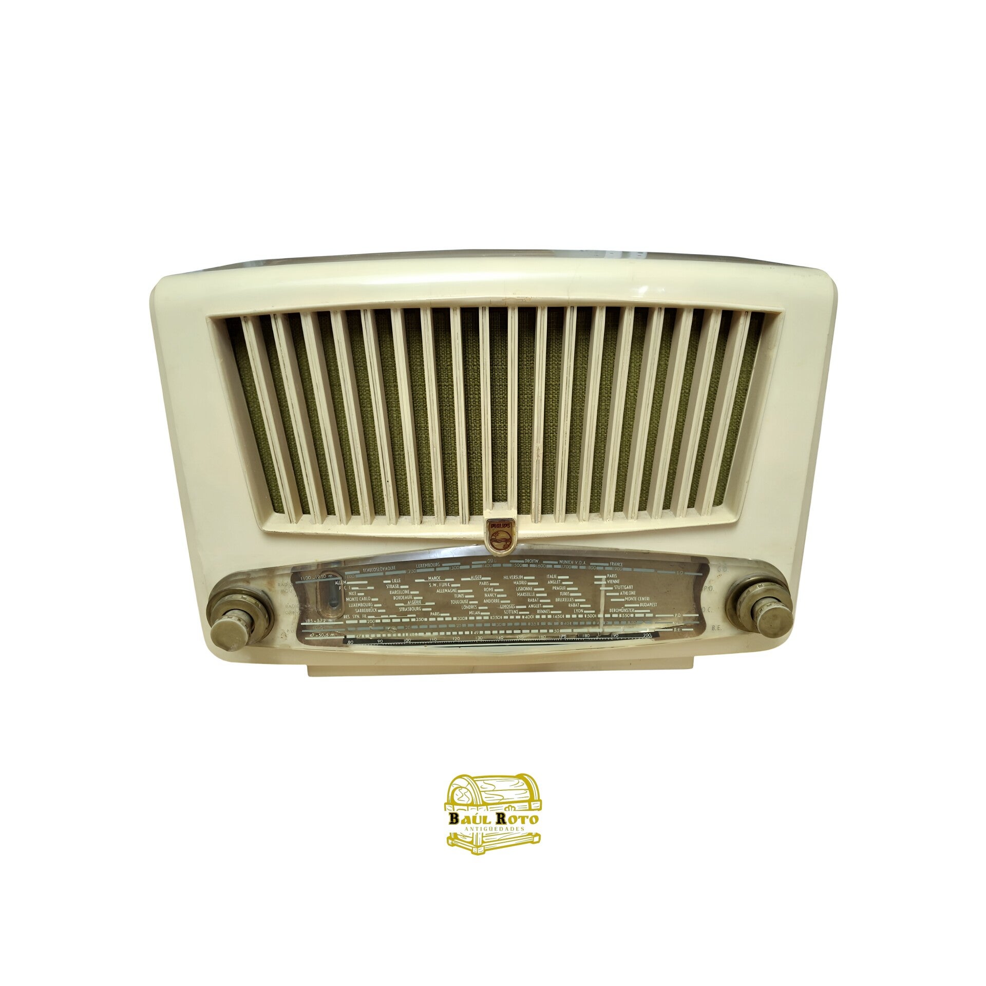 La radio blanca de Plaskon de Philips de 1950 es una pieza clásica y muy apreciada por los coleccionistas. Aquí tienes algunos detalles sobre este modelo: