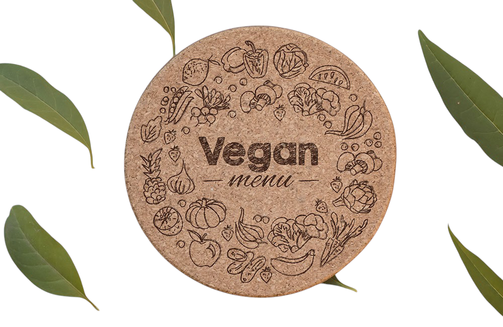 - Personalización Total: La imagen muestra un diseño con el texto "Vegan menu" rodeado de dibujos de comida lo que indica que se pueden personalizar con cualquier diseño, logotipo, texto o imagen que desees siendo ideales para bodas, comuniones, eventos corporativos o como regalos promocionales.