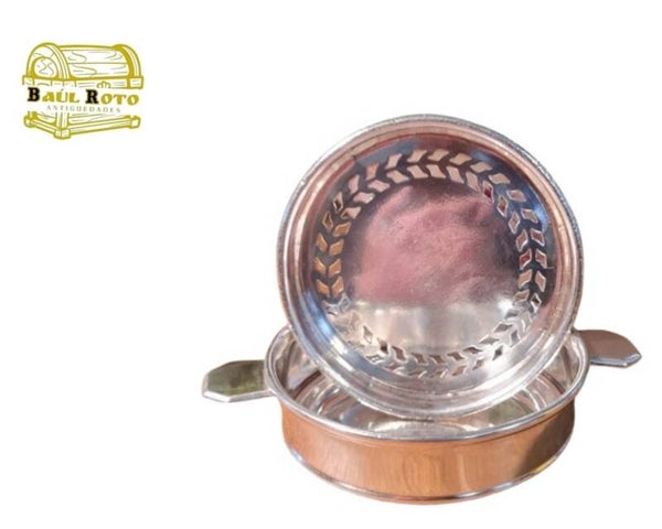 Esta pieza vintage marcada en su base como garantía de su origen y calidad está confeccionada en una resistente vajilla bañada en plata evocando el lujo que se encontraba tanto en los hoteles de alta categoría como en los elegantes transatlánticos de la época.