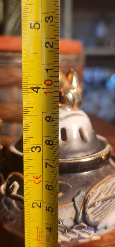Es un bello incensiario de los años 50, es de porcelana Japonesa DragonWare por las marcas la hemos identificado como Nakasima esta inmaculada y es un pco mas grande que las que se ven por ahi, esta mide 10x10.
